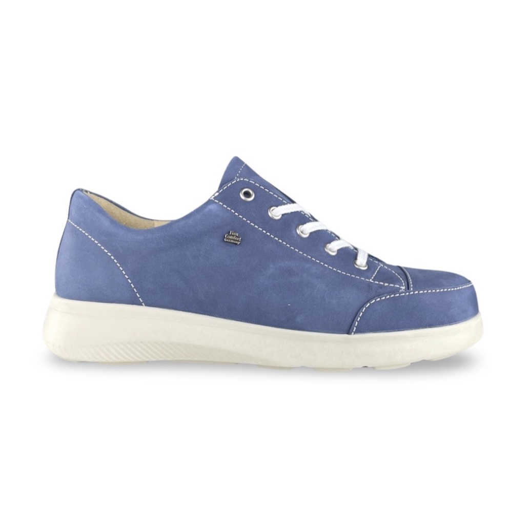 Fataga is een nieuw model van FinnComfort. Gemaakt van nubuckleer met lichte stiksels, witte veters en een lichte zoolrand voor een sportieve uitstraling. De schoen heeft een EVA-zool, waardoor het een lichtgewicht is. Geschikt voor normale voeten en aanpasbaar door de vetersluiting. Het uitneembare anatomisch gevormde kurk-leren voetbed kan worden vervangen door eigen orthopedische inlegzolen.